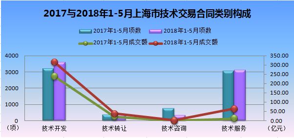 2017与2018年1-5月上海市技术交易合同类别构成