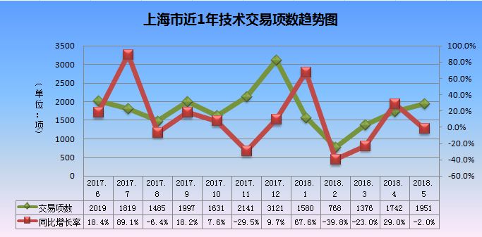 上海市近1年技术交易项数趋势